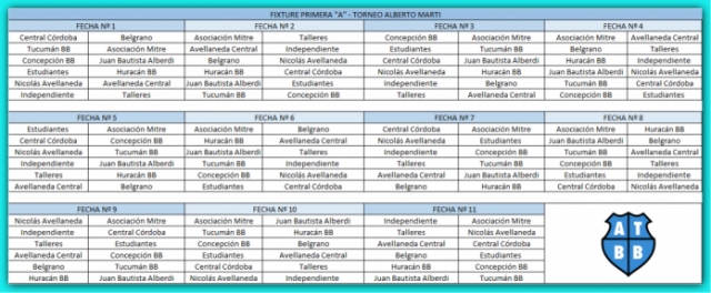 FIXTURE DE PRIMERA DIVISÍÓN